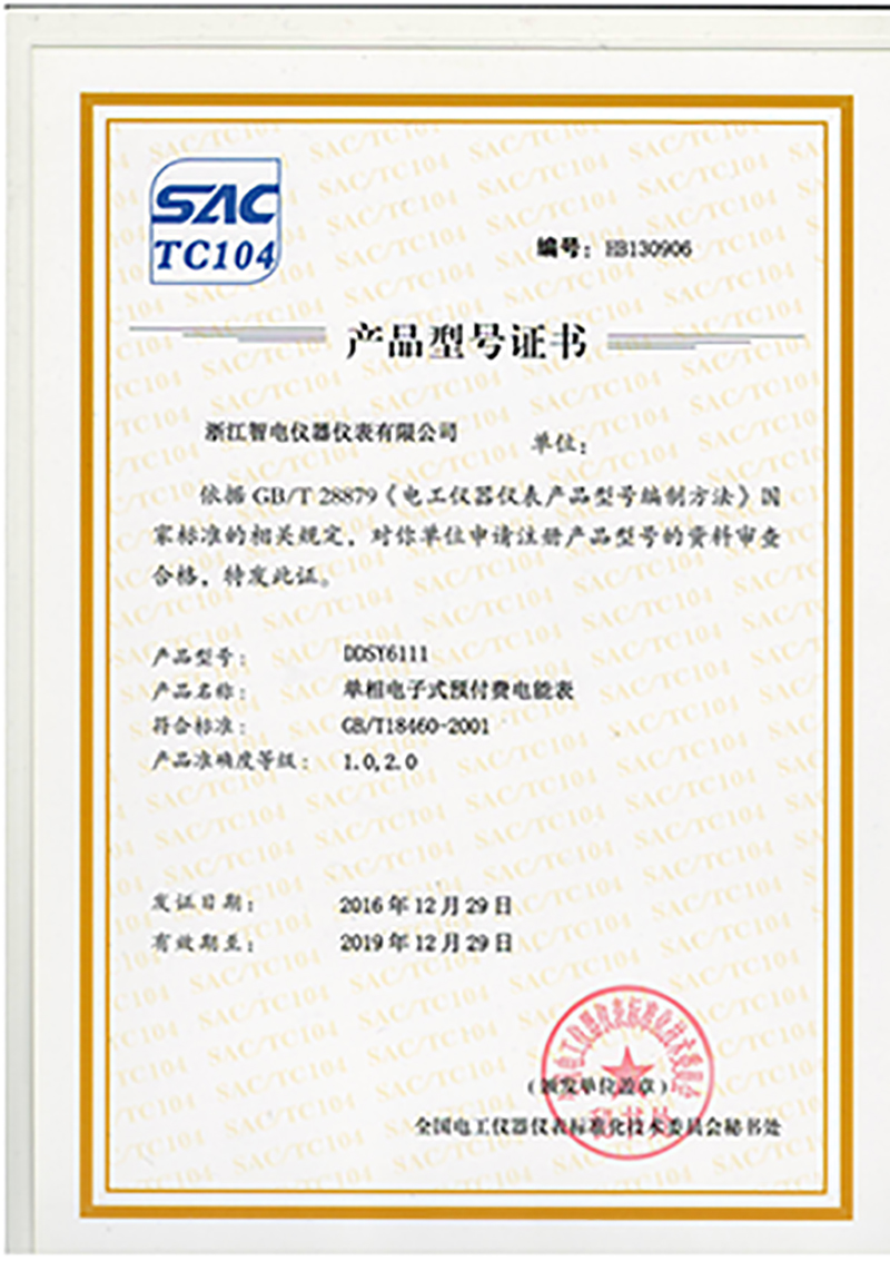 DDSY6111產(chǎn)品型號(hào)證書(shū)